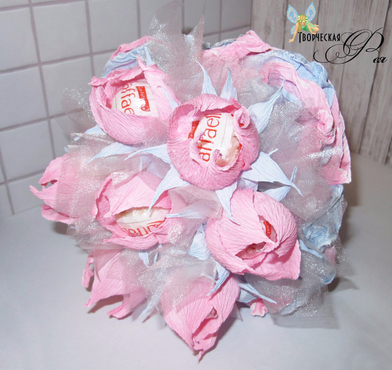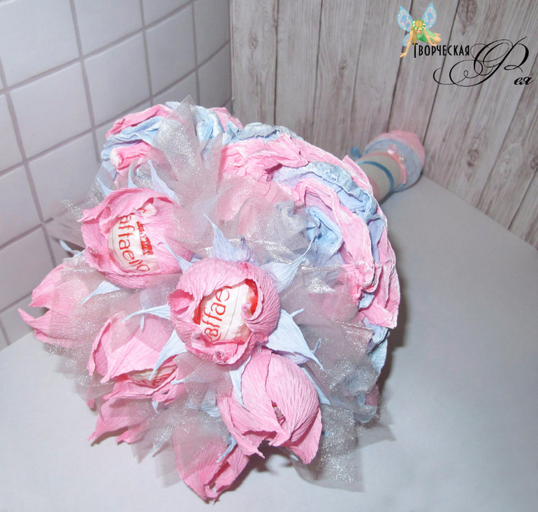 Всем добрый вечер! Продаю букет из конфет Ванильное небо. В букете 7 конфет Рафаэлло. Высота букета 37 см