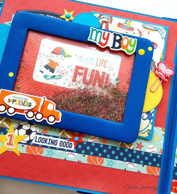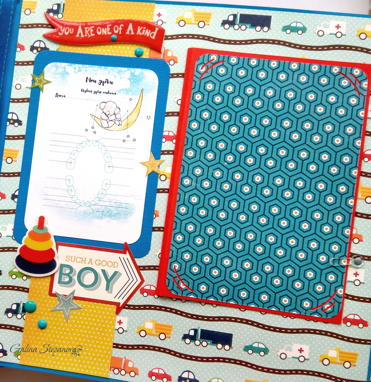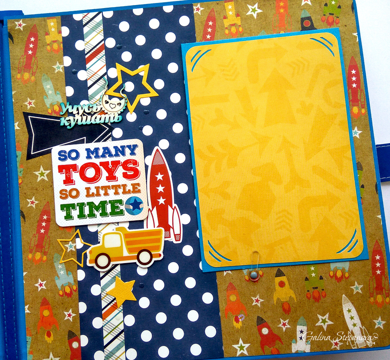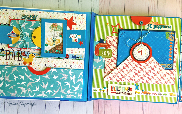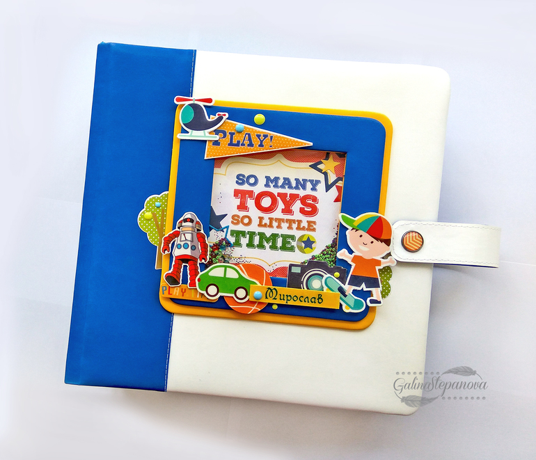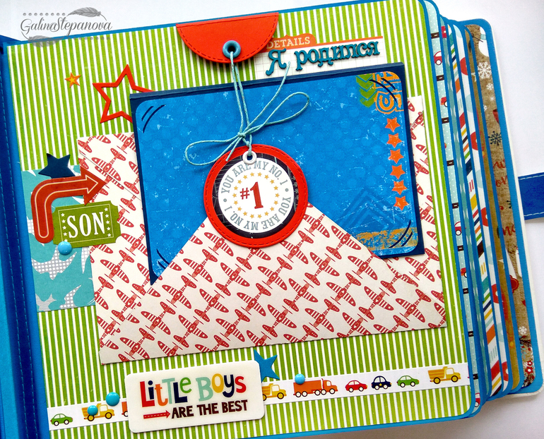 Скрапбукинг (альбомы, открытки и пр.)Всем привет! Сегодня пришла показать БОЛЬШОЙ фотоальбом для мальчика! Размер 25х25 см, 8 разворотов, вмещает больше 70 фото, т.к. помимо подложек есть большие карманы, куда также можно положить карточки, бирочку и др. памятные вещицы). Страницы тематические и до года. Обложка и переплет из эко-кожи, в первый раз делала такие, мне понравилось. Переплет очень прочный. На обложке большой шейкер, внутри несколько маленьких - интересные и необычные украшения. В общем смотрим, фото будет много).