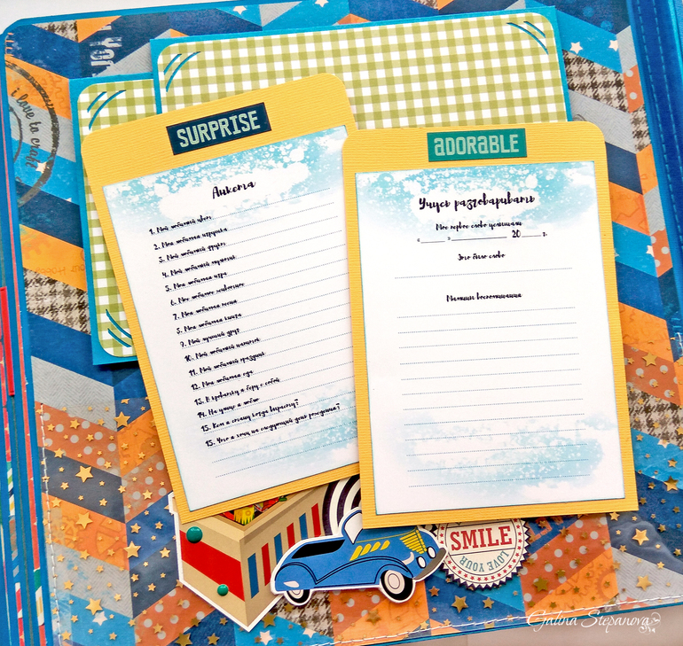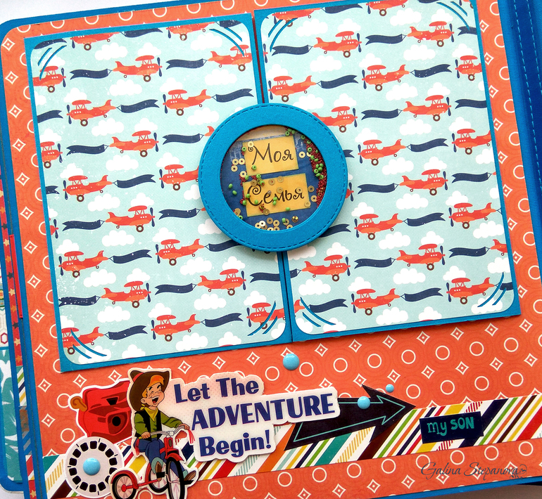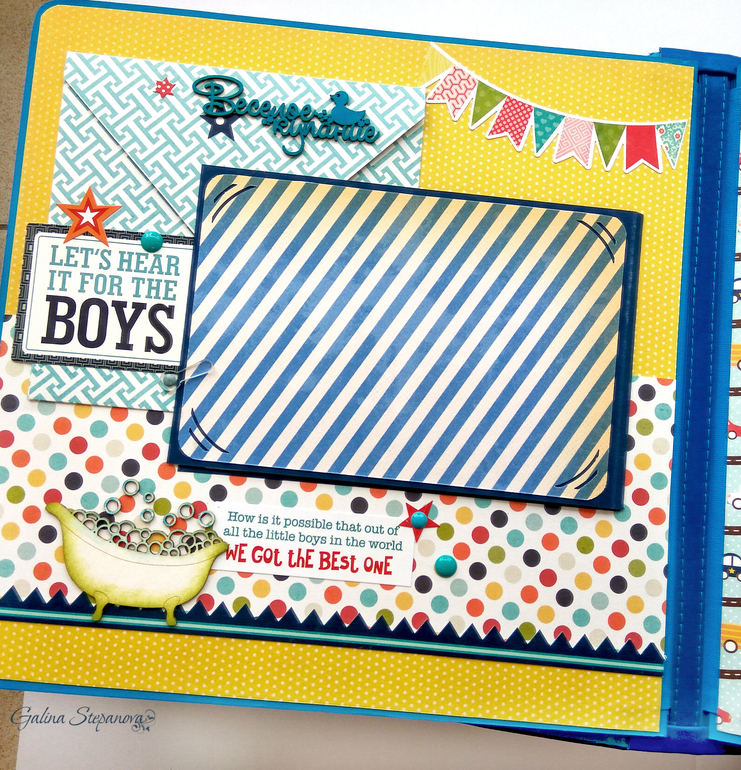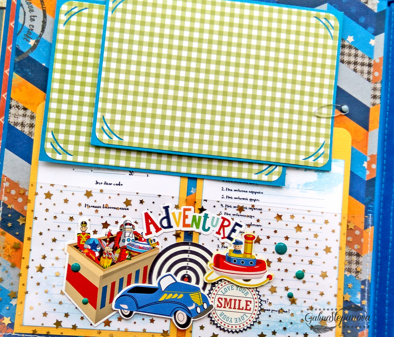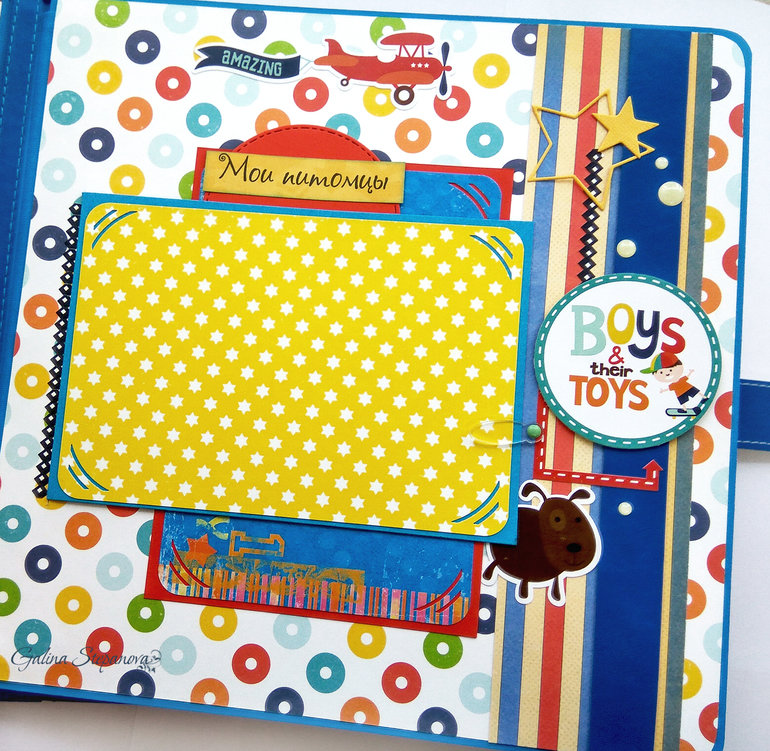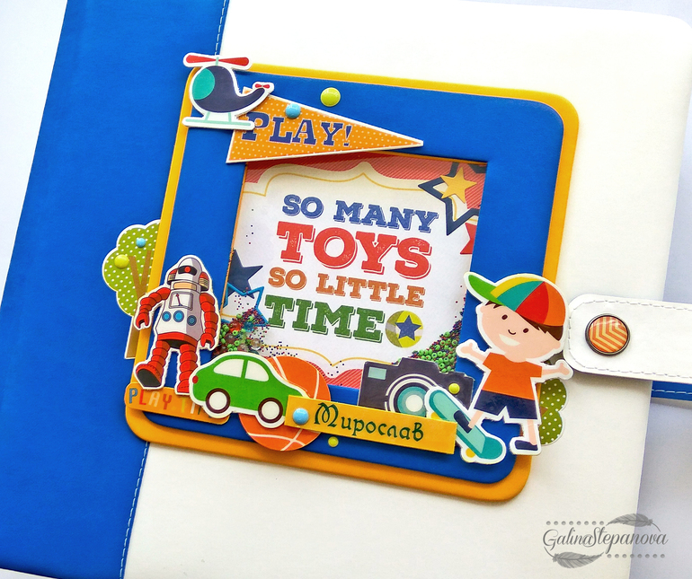 Скрапбукинг (альбомы, открытки и пр.)Всем привет! Сегодня пришла показать БОЛЬШОЙ фотоальбом для мальчика! Размер 25х25 см, 8 разворотов, вмещает больше 70 фото, т.к. помимо подложек есть большие карманы, куда также можно положить карточки, бирочку и др. памятные вещицы). Страницы тематические и до года. Обложка и переплет из эко-кожи, в первый раз делала такие, мне понравилось. Переплет очень прочный. На обложке большой шейкер, внутри несколько маленьких - интересные и необычные украшения. В общем смотрим, фото будет много).