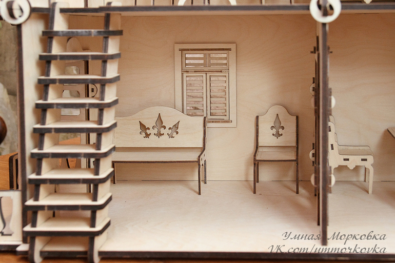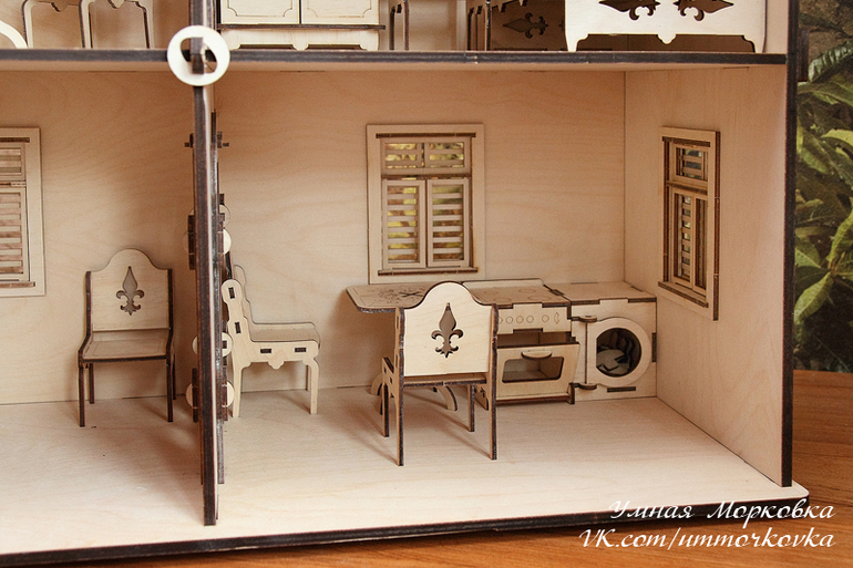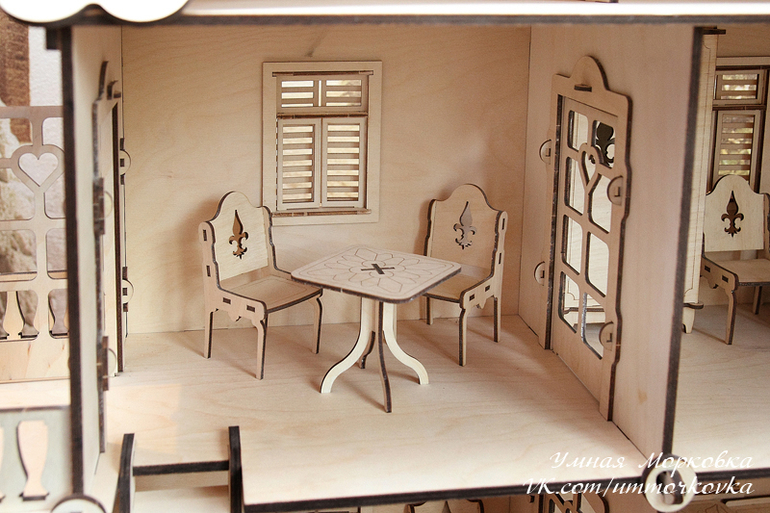С момента презентации цены на фанеру и резку выросли, так что домик в таком виде без мебели стоит уже 7200р. Если нужна упаковка в виде деревянного кейса - плюс 800р.
