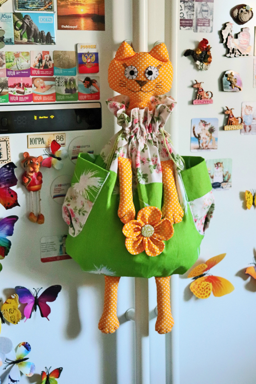 в наличии есть 3 кошки сверху (в котиках, зеленая и в бабочках), на заказ любая расцветка ))