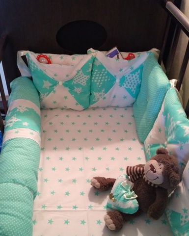 Текстиль для дома (шторы, постельное белье и т.д.)Комплект бортиков - 8 подушек и 2 валика - нашел своего малыша.