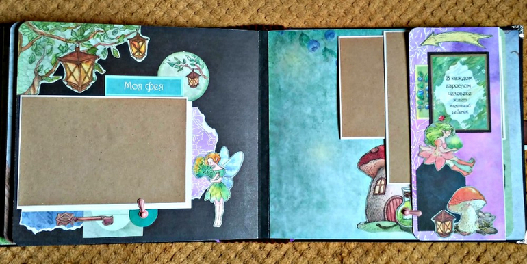 Скрапбукинг (альбомы, открытки и пр.)Вот и готов сказочный альбом "Таинственный лес" (подарок от молодого человека для своей любимой девушки) На его страницах живут феи, эльфы и диковинные звери, растут волшебные цветы и грибы, повсюду витает магия и волшебство Формат альбома 21*24 см, вмещает более 60 фото 10*15 см, есть потайные развороты, кармашки и места для записей. Внимание! Под катом много фото.