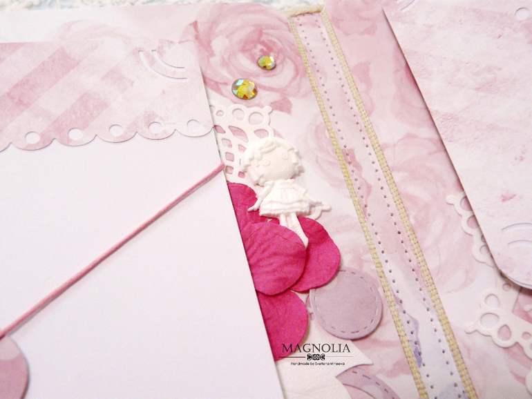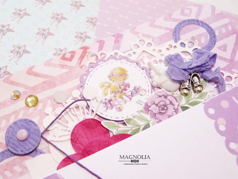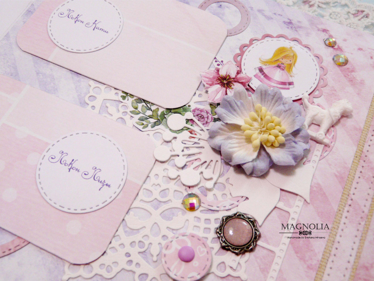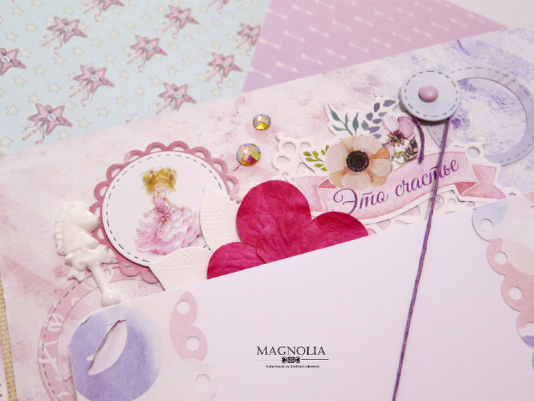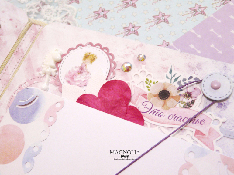 Он для сестренок двойняшек, для фотографий первого года жизни. Использовала бумагу от АртУзора причем две коллекции и обе свадебные😅, но оттенки подошли идеально! Бумага мне в эксплуатации понравилась