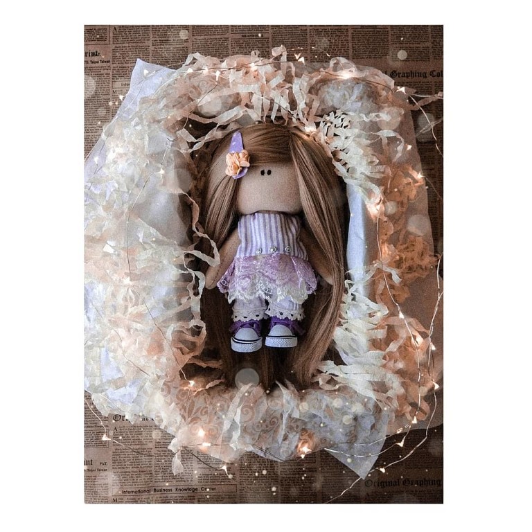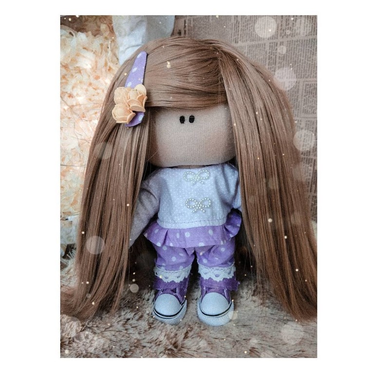 Куколка 22 см.Ручки,ножки и голова подвижные.Одежда вся снимается.Два комплекта одежды.поэтому любит переодеваться.Из очень пышных волос можно делать различные причёски