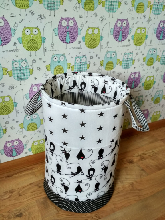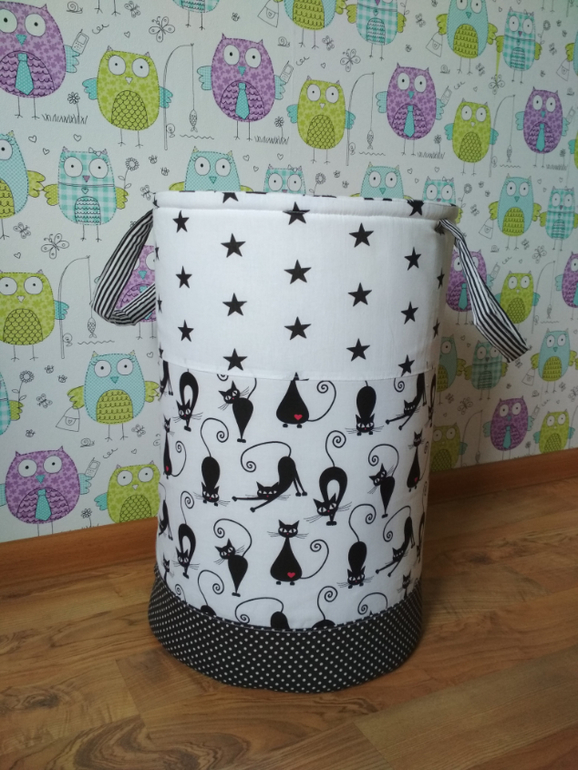 Шью на продажу и обменТекстильная корзина для игрушек с кошечками и звёздочками. Размер 50* 33 см. Цена 1200. Отправляю почтой или СДЭК.