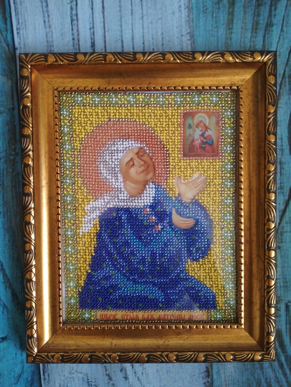 Продам икону, вышитую чешским бисером, Матрона Московская. Размер по раме 19 на 23 см, вышивка 13 на 28 см. Получено благословение на вышивку икон, освящает покупатель. 2500 вместе с доставкой