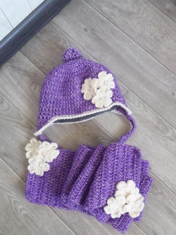 Шапка на ОГ 46-48, утеплена флисом. Шарф 120 см.