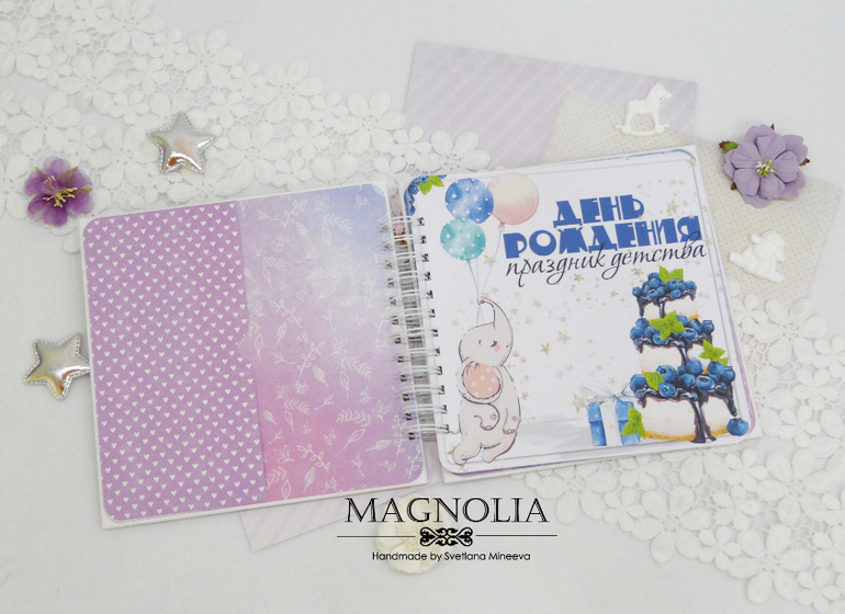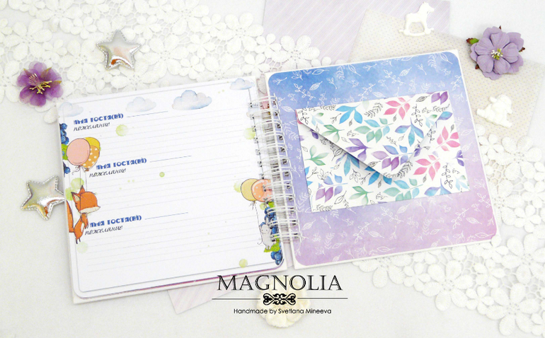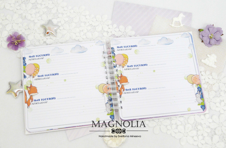 Предполагается, что в такой книге буду вклеены фотографии с празднования дня рождения. В моем воображении рисуются кадры из детской комнаты с аниматором или застолья в кафе, вручение праздничного торта, задувание свечей. Кроме фото в таком альбоме гости мероприятия оставят самые теплые пожелания имениннице.