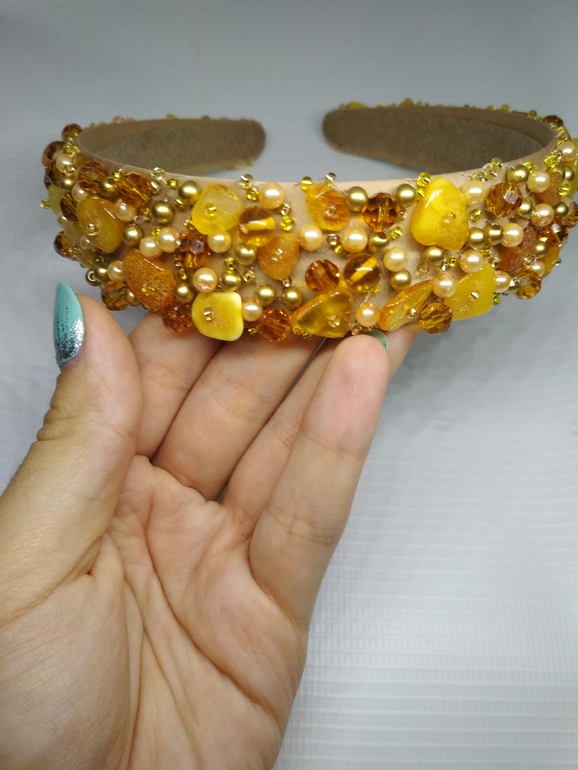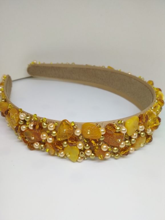 2. Янтарный ободок. Вышит натуральным Балтийским янтарем, бусинами и чешским бисером. 2000 р