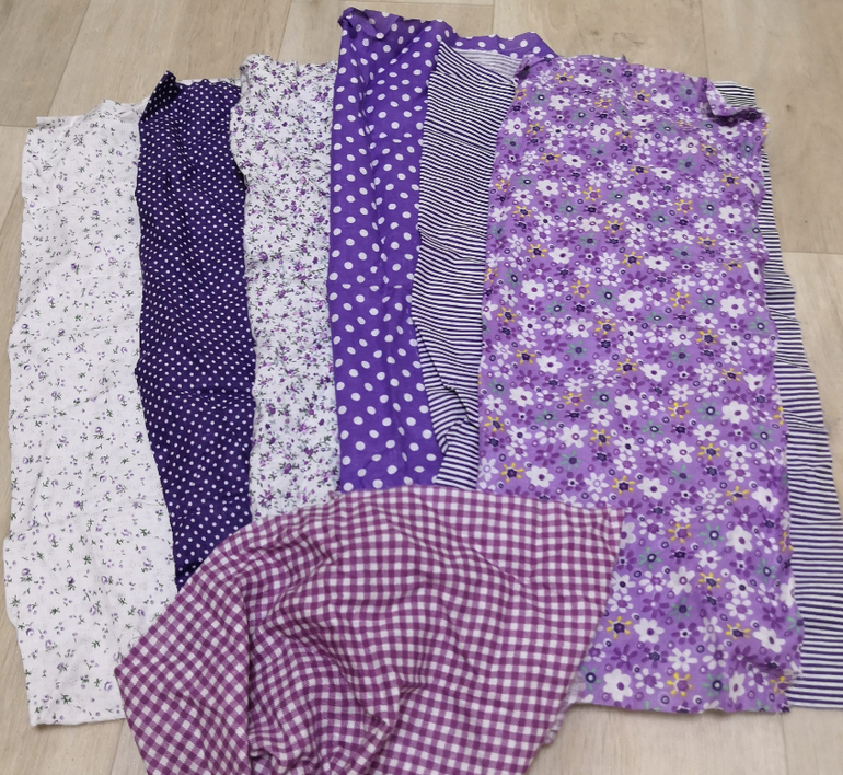 3. Отрезы ткани в фиолетовой гамме, 7 расцветок. Большая часть - 50*50 см, пара видов меньшего размера (уточню по запросу) = 250 руб. все вместе.
