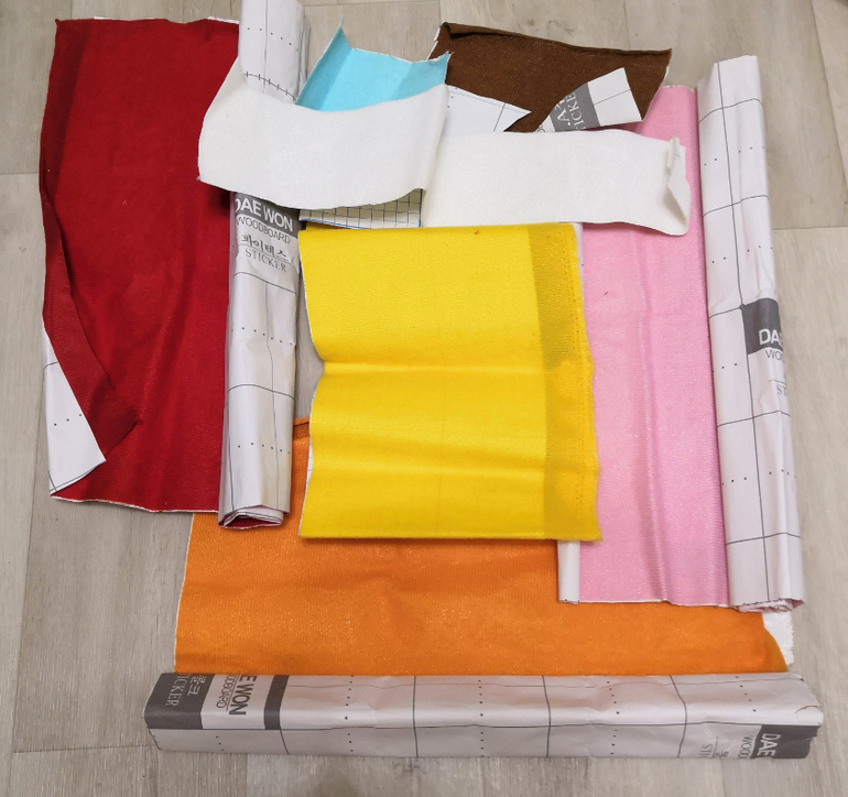 2. Велкро ткань на клеевой основе ( желтый 17*63 см, оранжевый 35*48 см, красный 45*55 см, розовый 44*53 см, белый 8*45 см) = 400 руб. все вместе