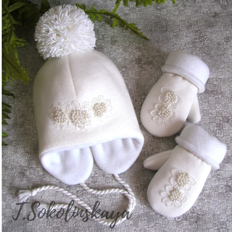 Шью на продажу и обмензимний комплект для малышки - шапочка и варежки