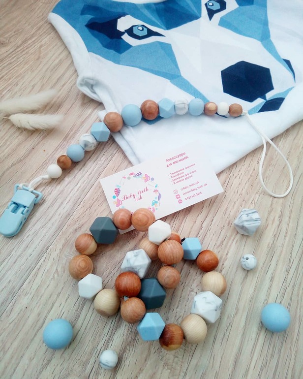 Изготавливаю именные деревянные и силиконовые держатели для пустышки, браслеты-игрушки, которые помогают облегчить прорезывание зубов, развивают мелкую моторику!