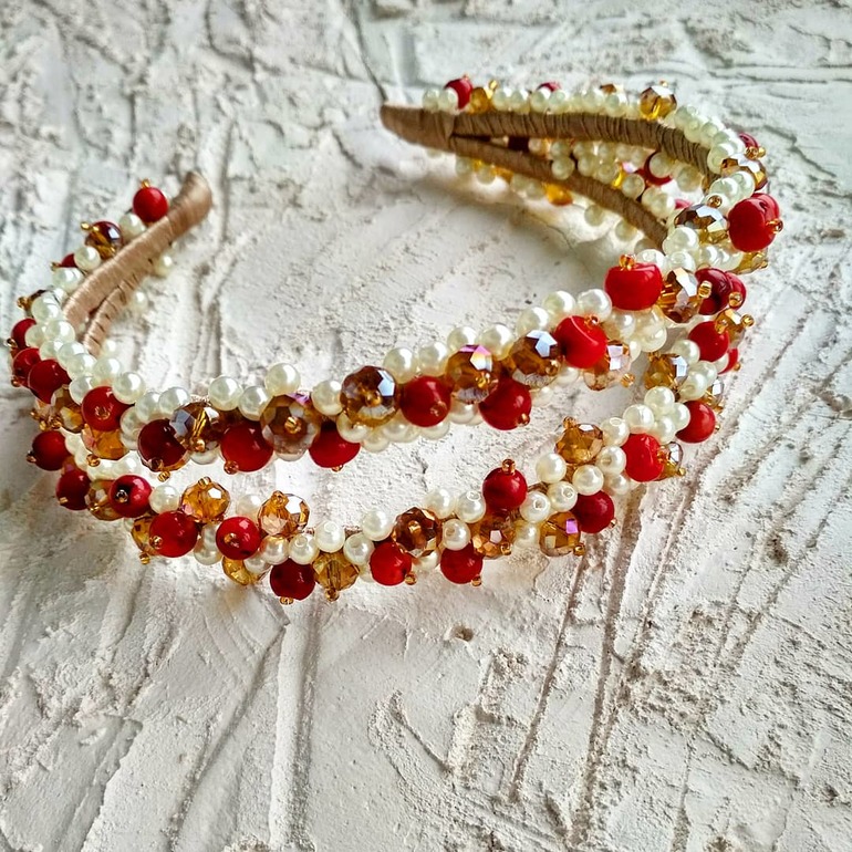 В наличии ободки, расшитыеянтарем, кораллами, розовым жемчугом и бусинами. Продаю недорого