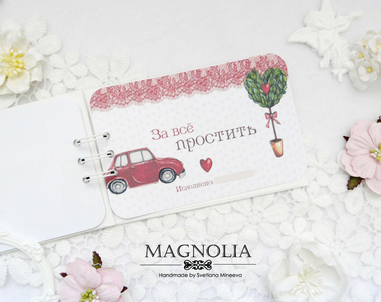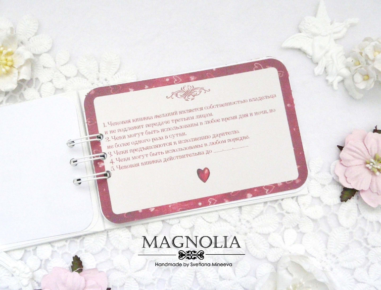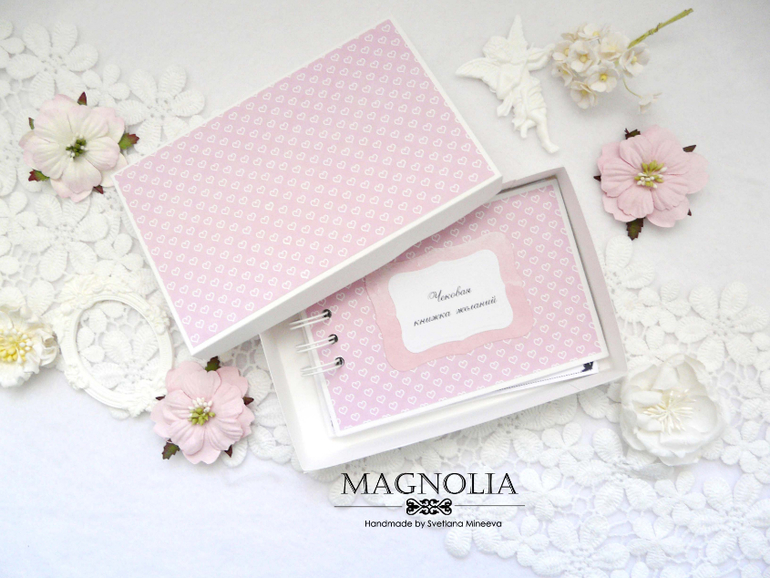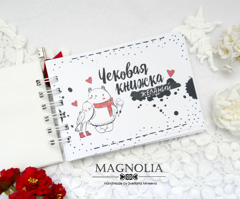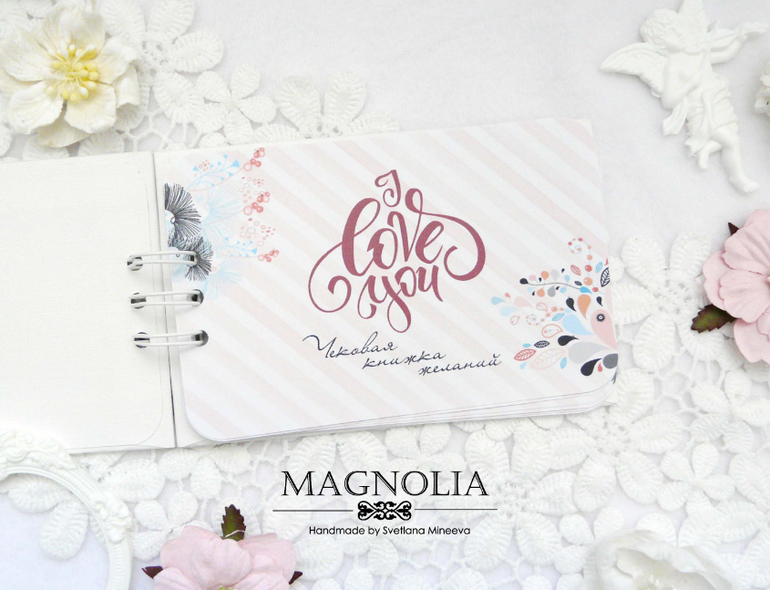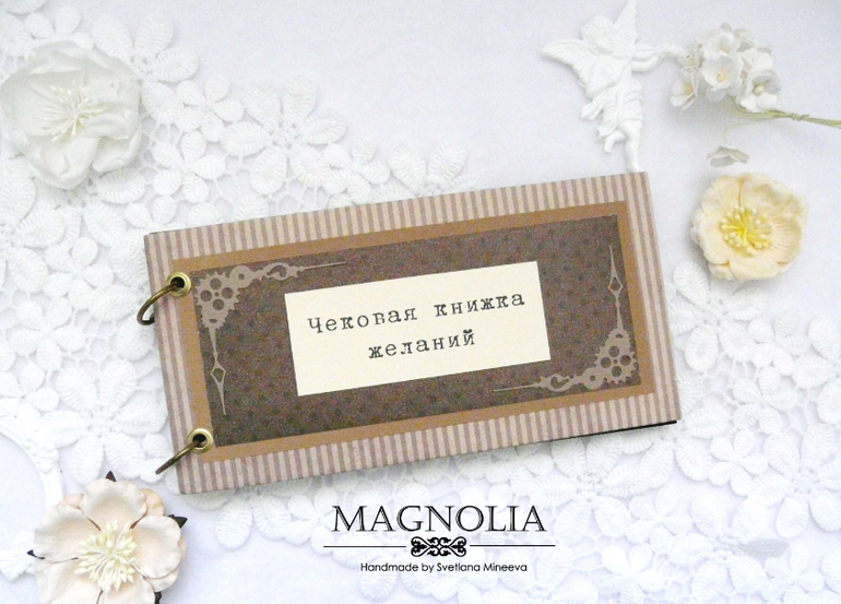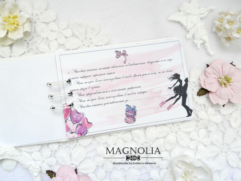 Это книжечка на кольцах с чеками в виде оформленных маленьких страниц, на которых можно самостоятельно вписать желания.