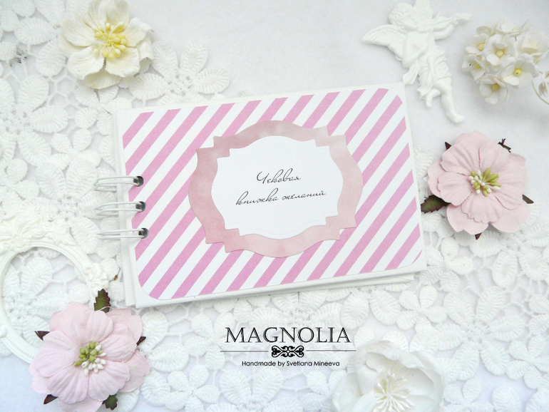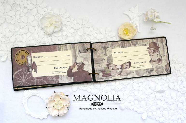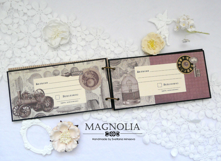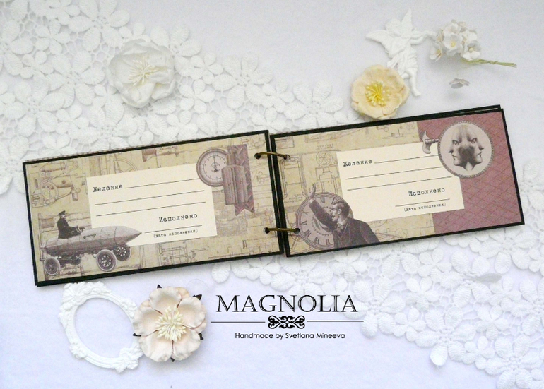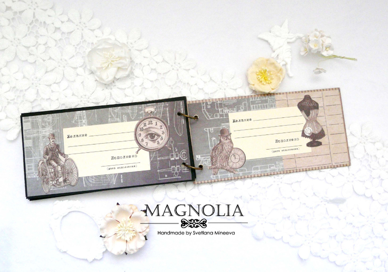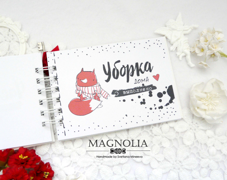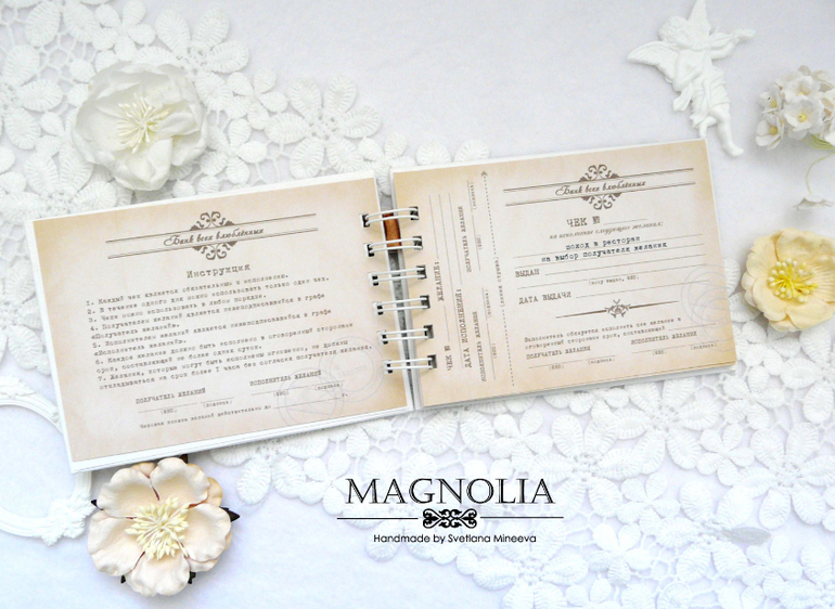 Это книжечка на кольцах с чеками в виде оформленных маленьких страниц, на которых можно самостоятельно вписать желания.