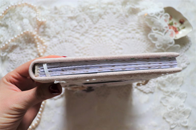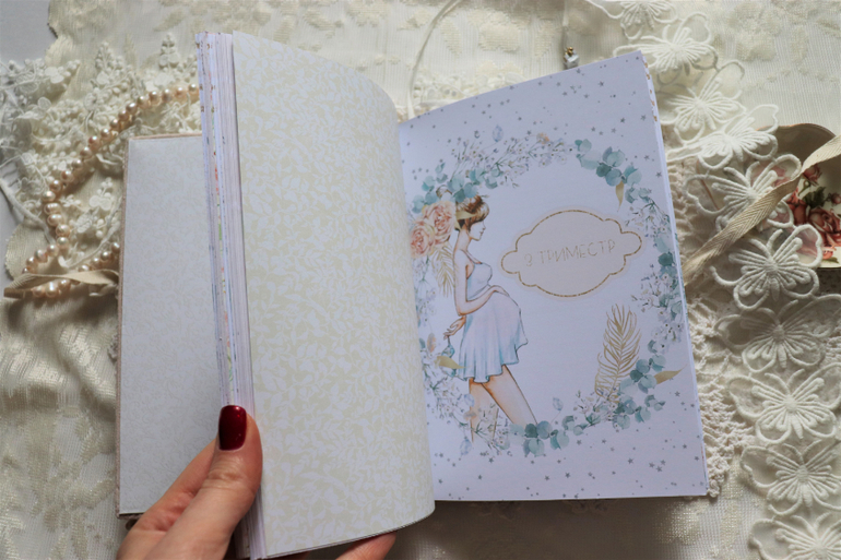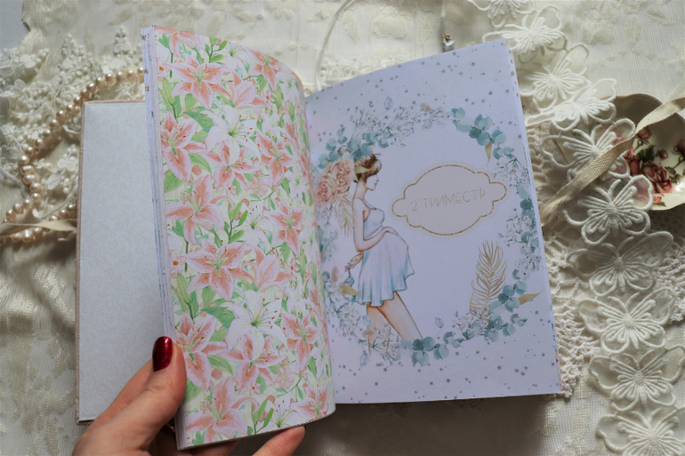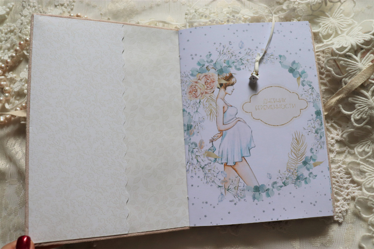Внутри 108 плотных страниц цветной печати, на форзацах есть кармашки, закладка с подвеской - подарочком