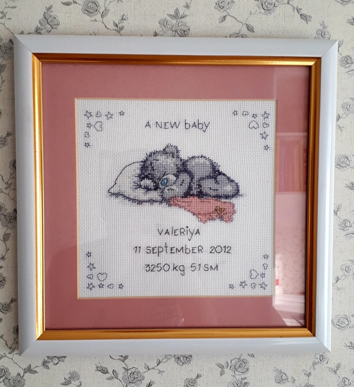 Можно выбрать любую понравившуюся вам схему с интернета или я предложу из множества, что есть у меня😉 На каждой будет вышито имя малыша, дата, время и вес при рождении.