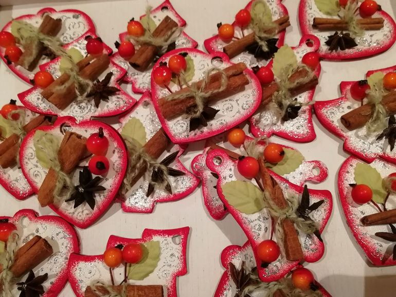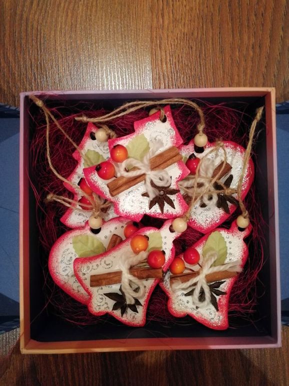 Две последние фотографии - замечательные работы, которые сделала Алевтина Прохорова из данных заготовок. Елочные игрушки с запахом корицы.