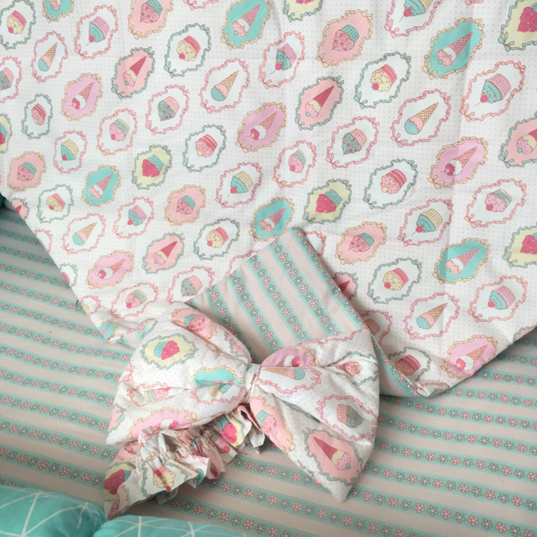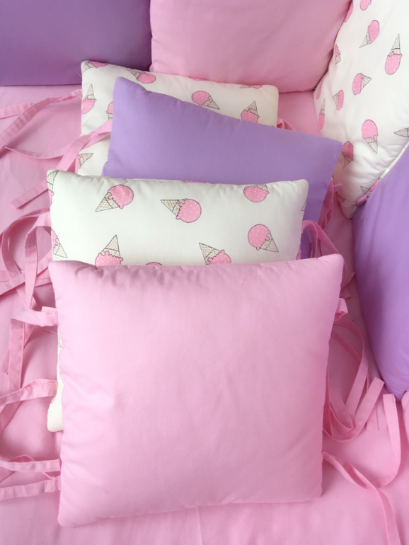 8 бортиков подушек, 2 валика, простынь на резинке, конверт одеяло. Из наличия 3000 руб. Обычная цена 5000 руб.