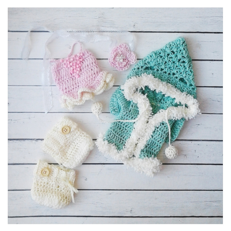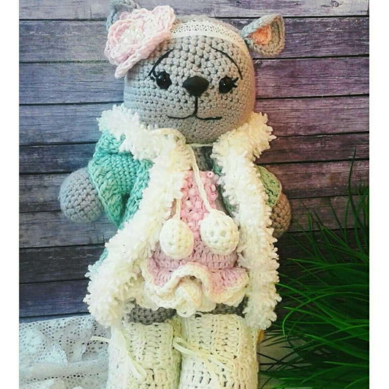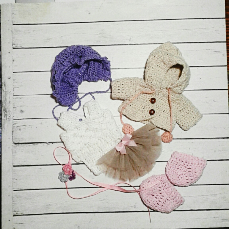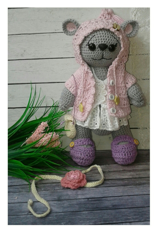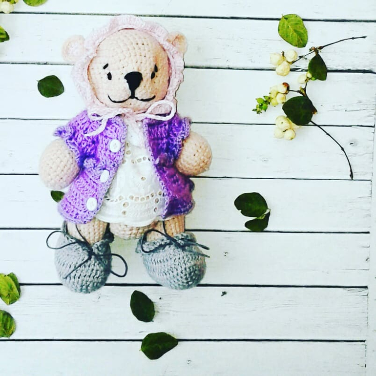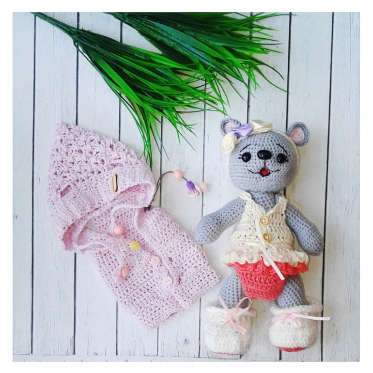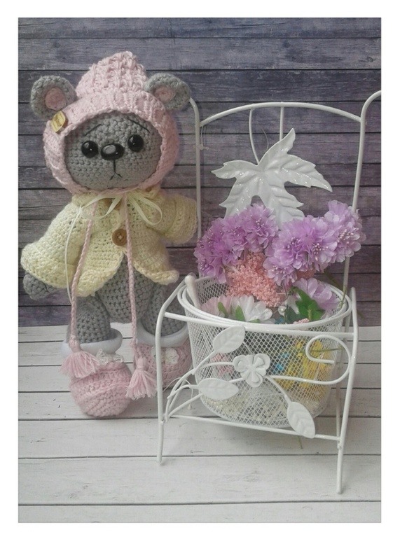 в комплекте к мише трусики,пинетки,пальто или комбинезончик,повязка
