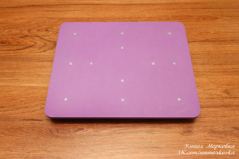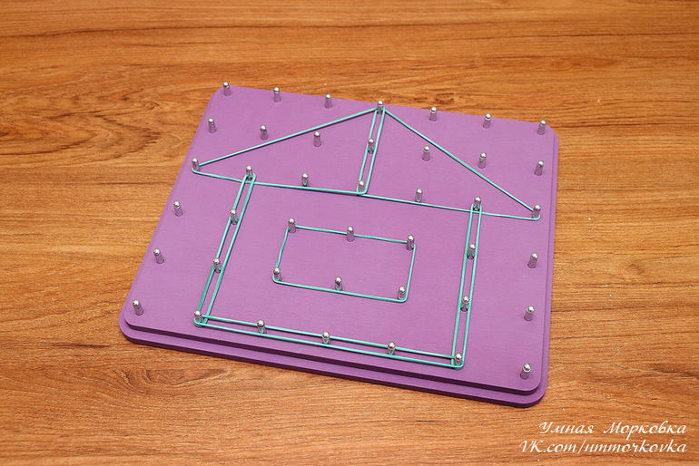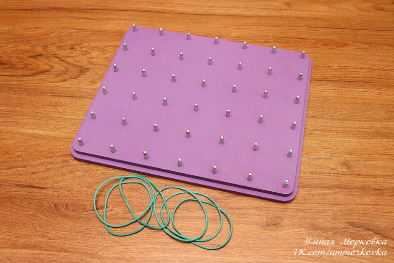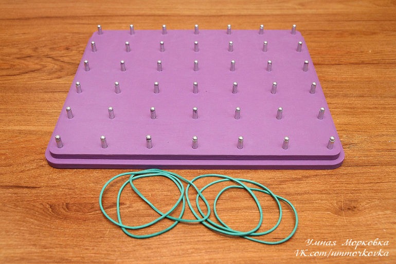 В дополнение к маленьким геобордам, размером 19х19см и количеством 5х5 сделал большой геоборд 27х23см с количеством 6х7. Стоимость 550р. В наличии готовый фиолетовый, под заказ - любой цвет из имеющихся красок.