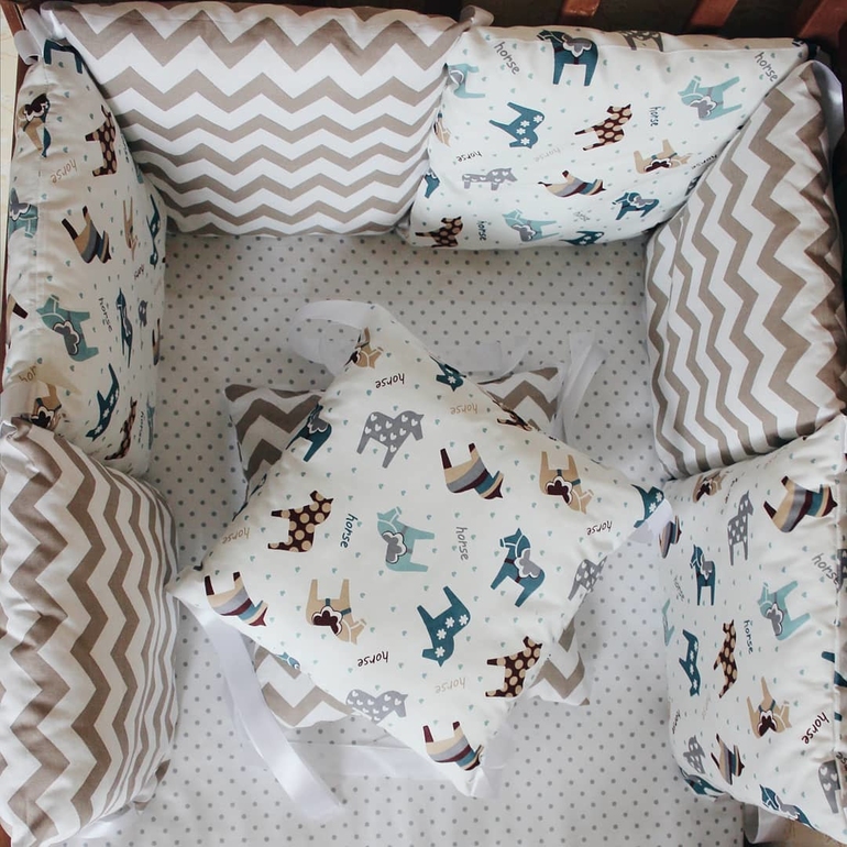 При вашем желании можно дошить полный комплект (12 бортиков на всю кроватку)