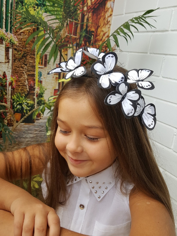 Бижутерия, броши, аксессуары для волосБабочки выполнены из сатина, расписаны вручную. Обручи в наличии. Возможно изготовление в любом другом цвете, форму бабочек и их рисунок тоже возможно изменить. Срок изготовления 3 дня. Отправка почтой. Цена обруча 1300р. + почтовые расходы.