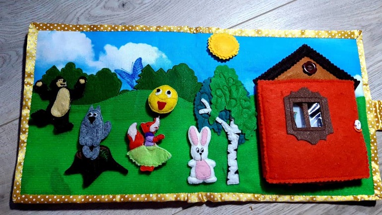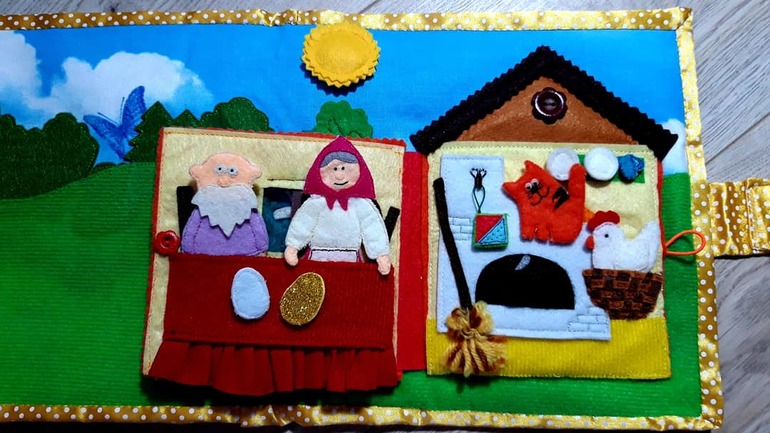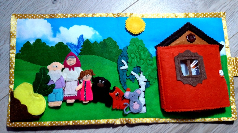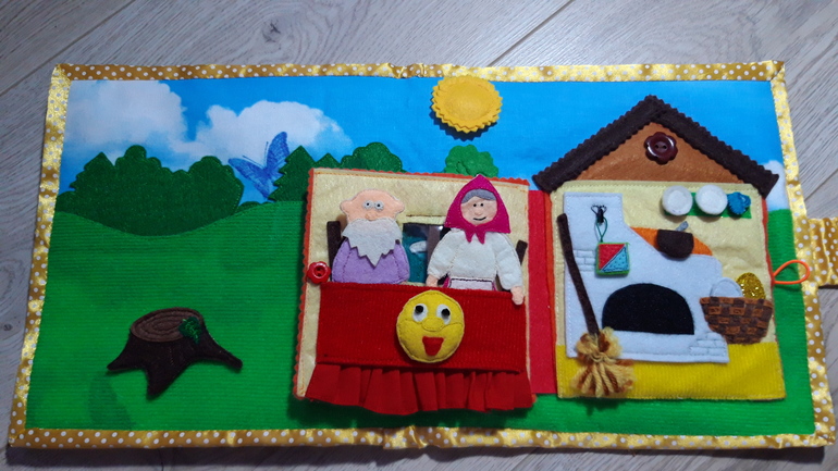 На оборотной стороне есть вместительный карман на молнии для удобного хранения съемных элементов, а их более 15 штук. Все Герои сказок изготовлены из качественного фетра, а благодаря липучкам и велкро ткани их можно разместить в любой части планшета.