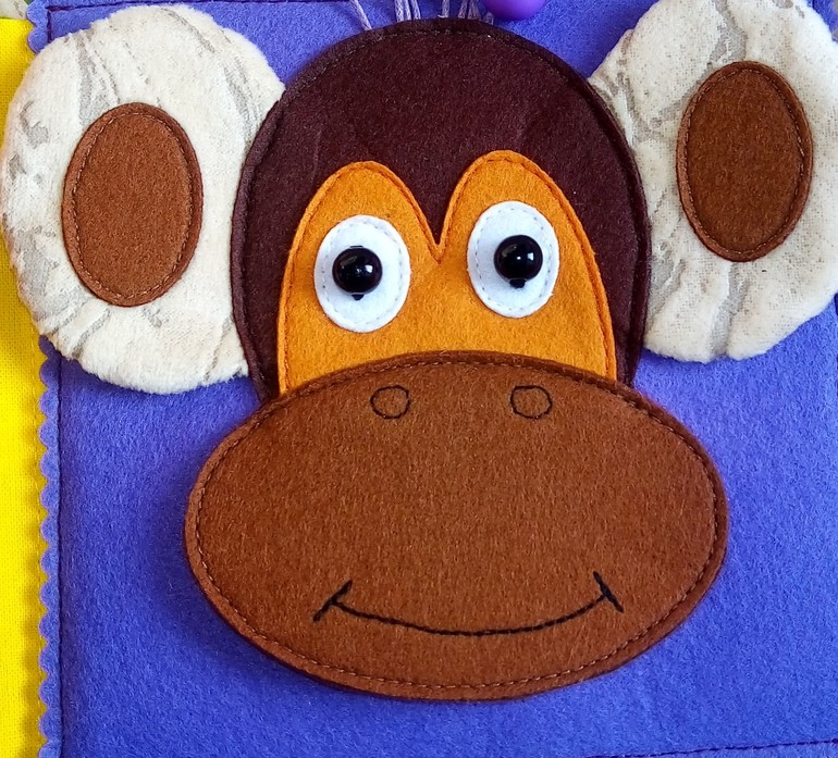 Обезьянка, у нее замечательная прическа, шуршащие ушки и открывающийся ротик. А еще банан которым ее можно кормить