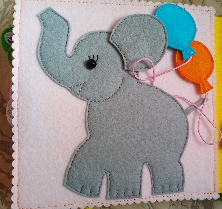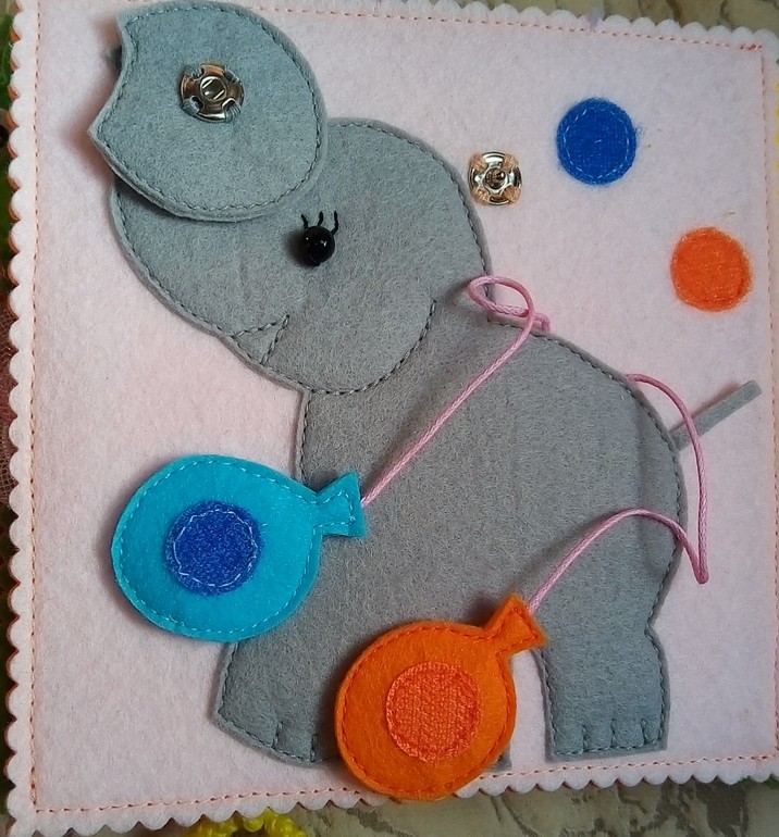 Ушко у слоника крепиться на кнопку, шарики на липучку.