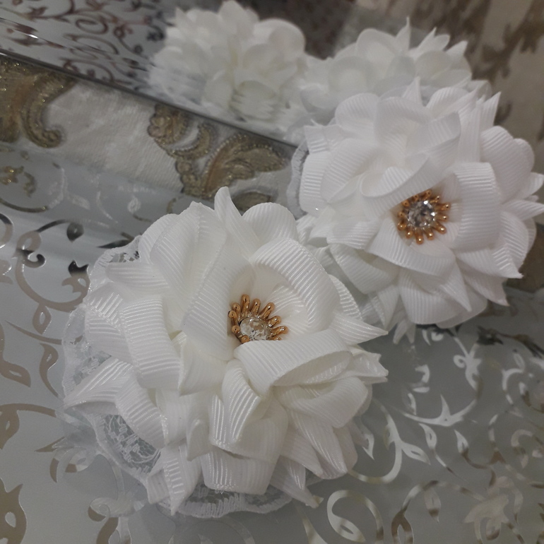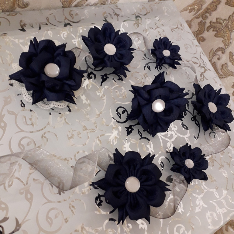 Цена таких красоток 150 рублей за штуку (1 большой и 5 маленьких цветочков на заколке или резинке).
