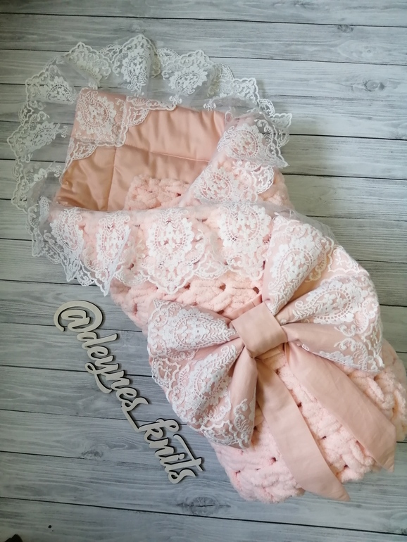 Одеяльце теплое, внутри альполюкс 200, снаружи нежнейший сатин и шикарный кружевной уголок Им можно укрывать малыша в кроватке, делать фотосессии ️
