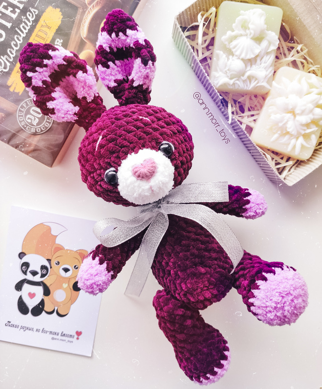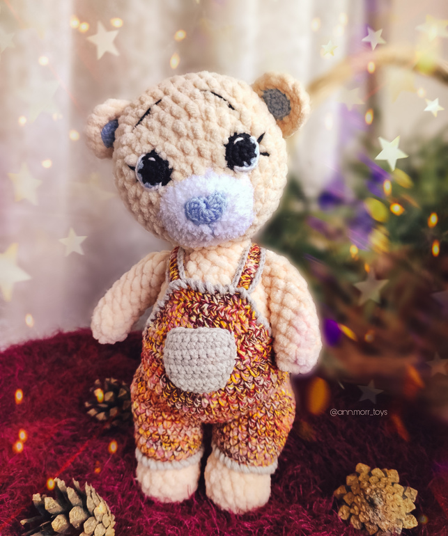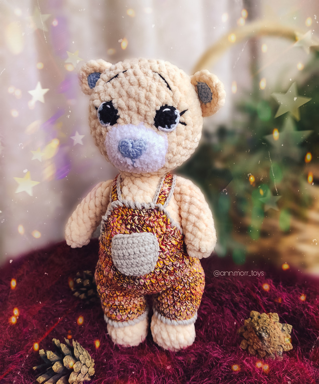 Пряжа - полиакрил (велюр), наполнитель - холлофайбер. Безопасные глазки на винтовом креплении. Можно стирать. Ножки подвижны.