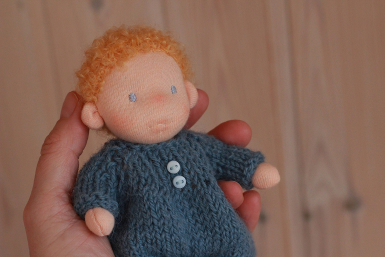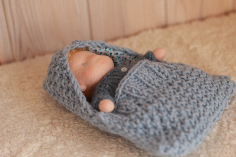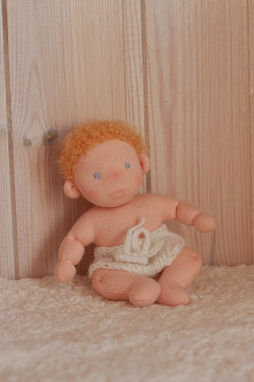 Малыш ,совсем кроха,15 см. Выполнен из натуральных материалов. Ручки и ножки,благодаря перетяжкам,имеют большой объем движения.
