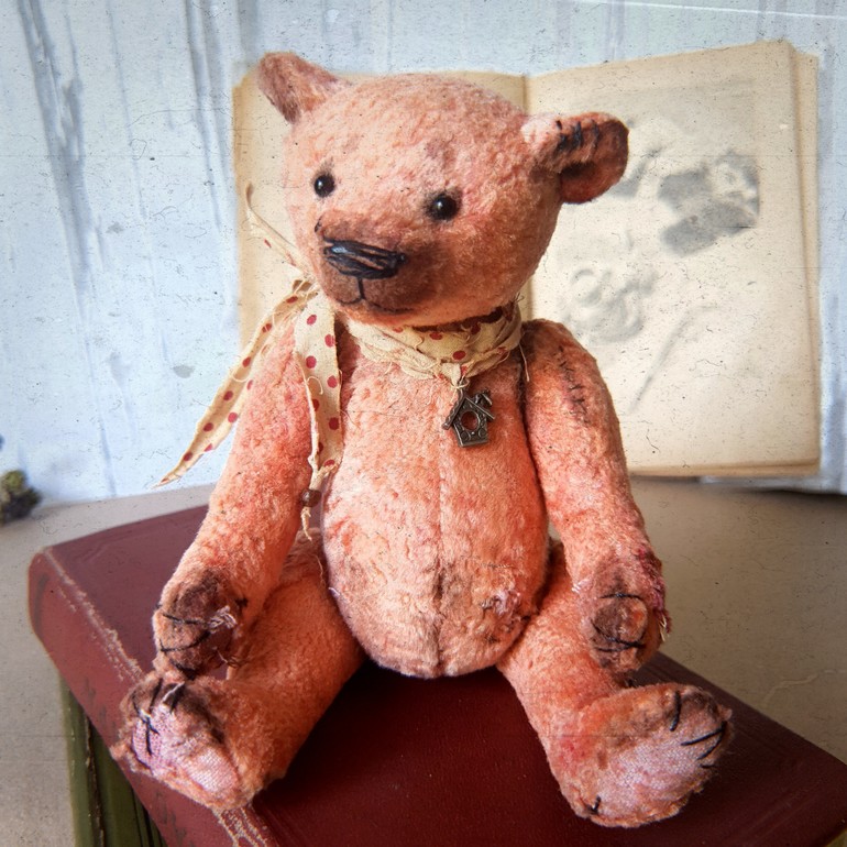 Я их сшила из советского плюша (кроме белого медведя), у всех внутри опилки и галька, голова и лапы подвижные. Ростом 18 и 20 см.