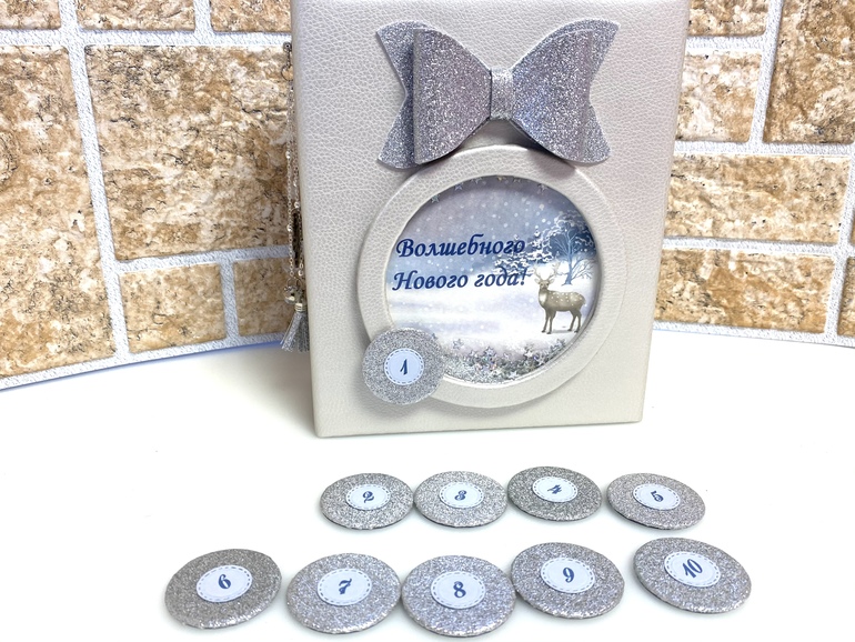 выполнен в виде шкатулки с рамкой - шейкером, на которой с помощью магнитных фишек ведется обратный отсчёт до главного праздника в году 🎄