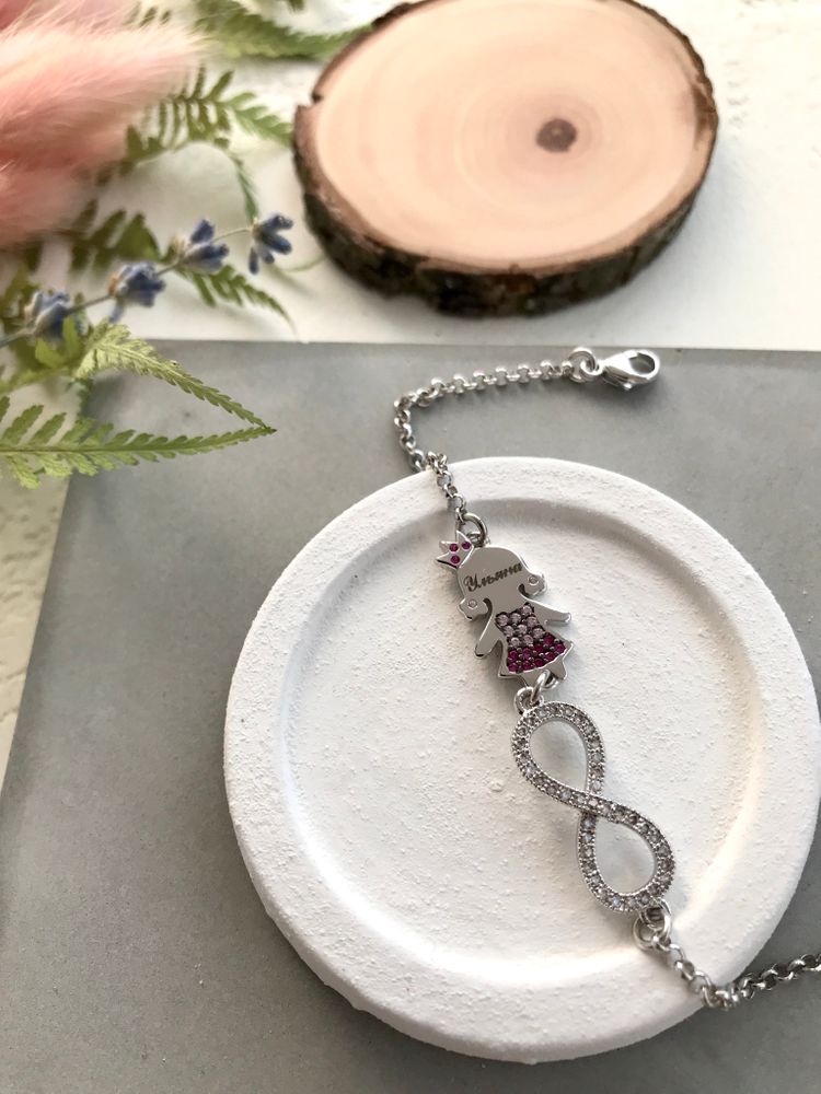 Так же возможно сделать с фигурками из серебра. Стоимость браслета с 2 малышами 1300 руб. (без учета гравировки)