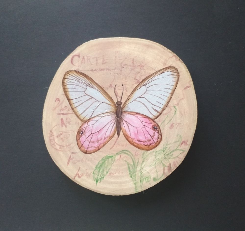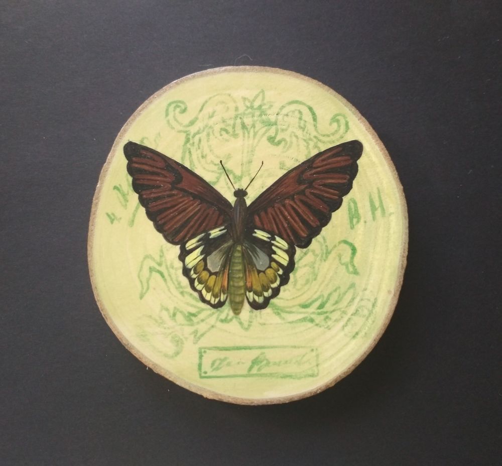 Живопись. Картины и портретыСпил осинки "Зарисовки коллекционера" расписан акриловыми красками и закреплён лаком! Спил очень лёгкий. Станет украшением вашего чаепития)