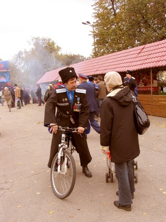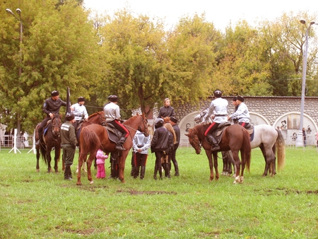 Слушали песни, вопили подпевали и сами. Танцевали, сопереживали. Я видела самую впечатляющую джигитовку в жизни...никто не сравнится с казаками на коне! Единоборства впечатлили, т.к. был такой большой выбор оружия..острого! Были и раненные(не сильно). Боролись друг с другом, рубили арбуз, бутылки, яблоки. Стали свидетелями сватовства, свадебных плясок, представления Петрушки, кормили козочку. А в еще узнали очень многое о казаках, о том как становились ими юноши и про обряды инициации, о том,что казаки были и в Южной Африке, и что церковь(которая будет на фото) возили с собой с места на место. Всех приглашали в курень..в хату...угощали местными яствами. А сами казаки пили самогон=) какой-же казак без этого?)...Мы уже уходили тогда, когда начались настоящие казачьи празднования с самогоном и песнями)))) Смотрите фото, делитесь фактами и впечатлениями: