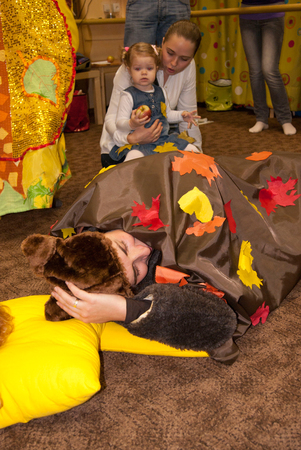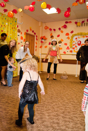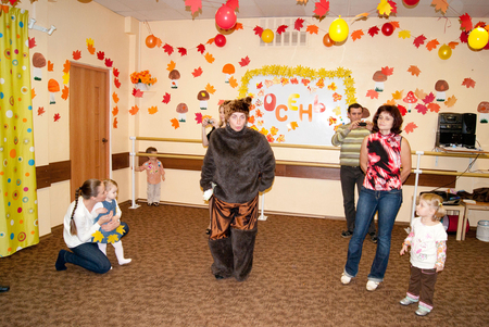 Куда пойти с ребенком? (Все о досуге с ребенком и семьей)Выпендрилась))). На самом деле это просто закрытый праздник от школы Развития Умница. Прогресс взросления на лицо, за мамой во время танца не гоняемся, танцевали в центре круга! незнакомые вещи принимаются с удовольствием, а с чаепития уходить не желали. На празднике деток познакомили с признаками осени(созравание плодов, частые дожди, обилие луж, яркиелитья+листопад), а в завершении все пели колыбельную медведю.