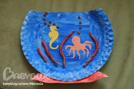 и под конец достали уже покрашенную тарелочку и сделали аквариум