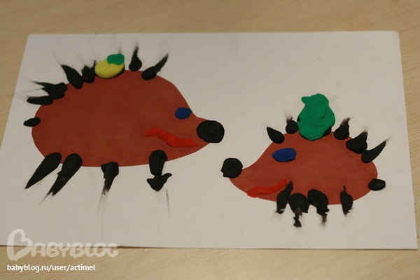 В последний месяц занимается только пластилином - лепит, режет, кормит игрушки, готовит из него. И рисует. вот некоторые пластилиновые рисовалки.