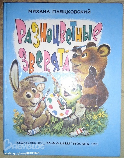 5.Пляцковский "Разноцветные зверята".У нас именно такая, 1993 года выпуска)) Супер книга!Еще я маленькая ее читала, теперь читает мой сын.
