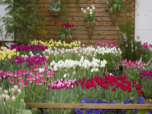 * Началась неделька с похода на выставку тюльпанов. Катя была так удивлена обилием цветов, что даже не пыталась их потрогать. Смотрела во все глаза ) А посмотреть было на что: