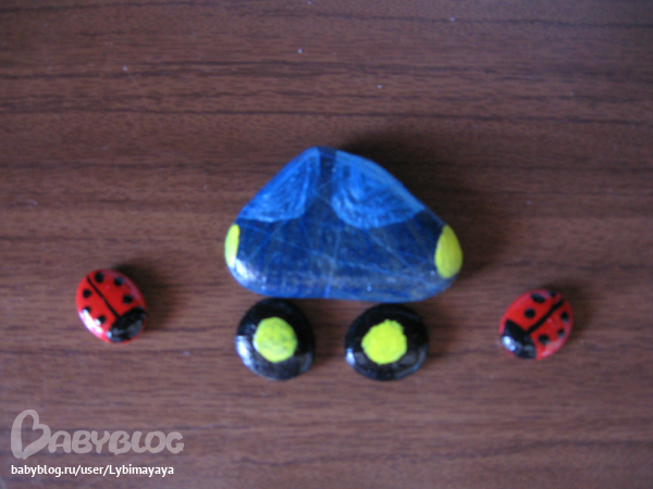 Самодельные игрушкиВалялись у меня без дела камешки морские, привезенные когда-то с моря....и вот их час настал...Раскрасила акриловыми красками, покрыла лаком и......вуа-ля...новая игруха готова....Используем в качестве "конструктора", просто для игры и даже босыми ножками по ним топаем - профилактический массаж получается))))) А главное запас будет постоянно пополняться, возможности игры - увеличиваться!!!