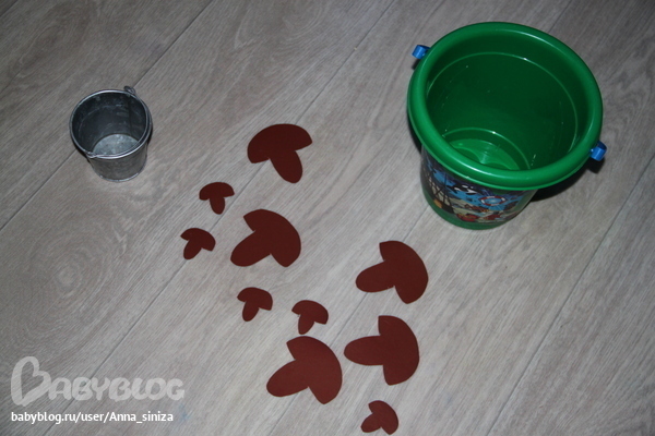 Ходили в лес за грибами. Маленькие грибочки - в маленькое ведерко, большие - в большое складывали.