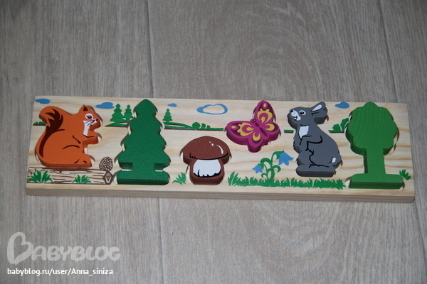 Рамку-вкладыш Андрюша освоил без труда. Правда, самостоятельно он пока не играет с ней. Любит, чтобы я была рядом и задавала вопросы: кто/что это, где домик, найди то-то и т.д.