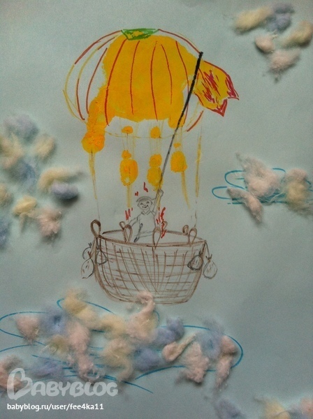 картинки из родных сыновьих ладошек)))) ну и облачка из ватки